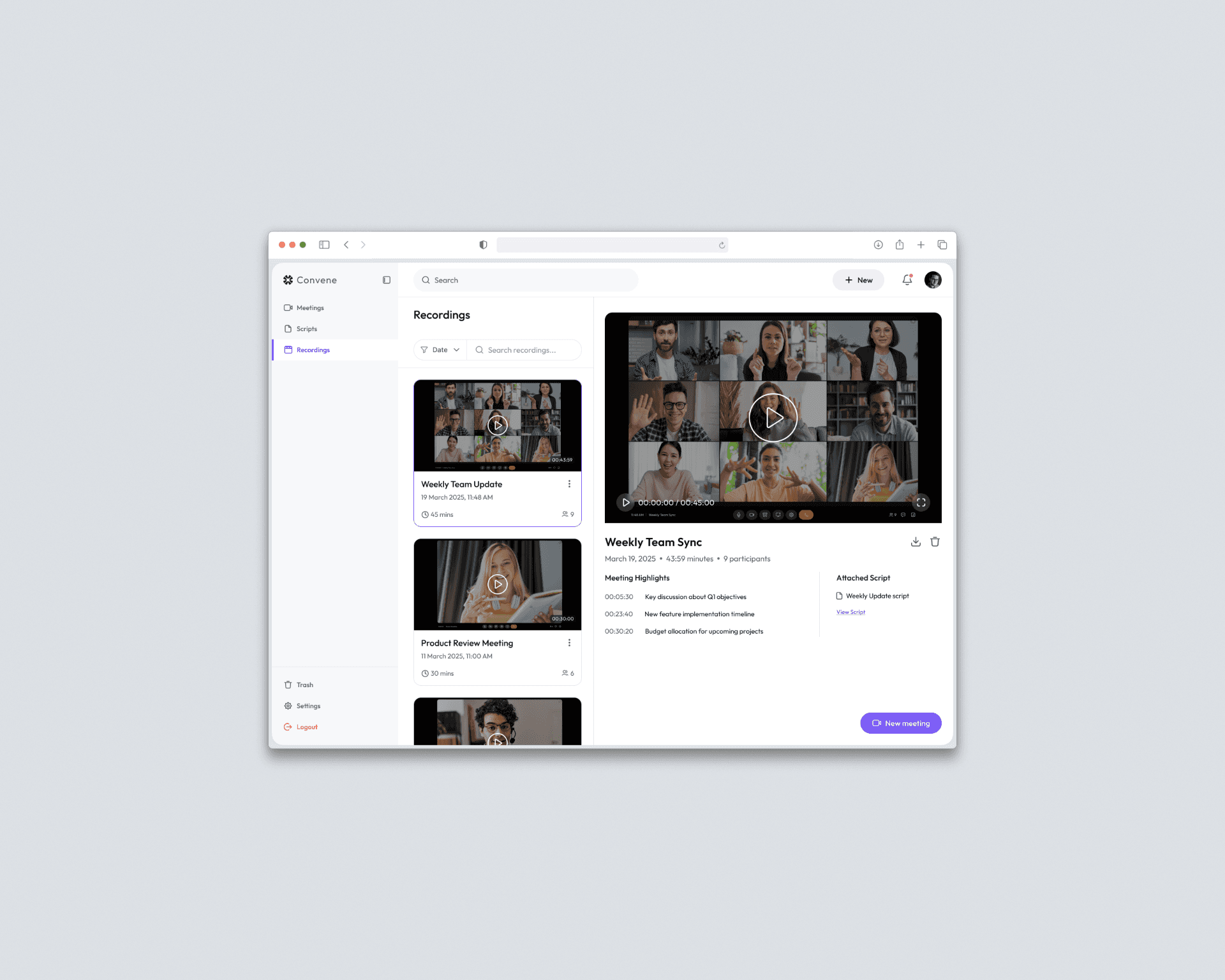 A clean, intuitive platform that integrates meetings, scripts, a floating teleprompter, and recordings, reducing cognitive load and enabling smoother, more effective communication for sales and customer success teams.